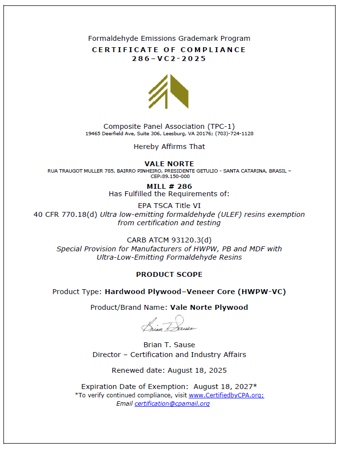 Documento garante que nossos produtos estão de acordo com as leis do Estado da Califórnia e dos Regulamentos Federais dos Estados Unidos.